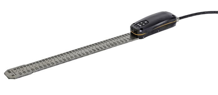 This PEC probe was developed by Eddyfi Technologies for in-service screening of storage tank floor annular rings. Currently, no other inspection technique can do this without emptying the storage tank. With its super-thin 4.8 mm (0.2 in) titanium blade, the probe can slide up to 400 mm (16 in) under the tank floor edge and assess the remaining wall thickness of this critical region exposed to corrosion. Built-in remote controls and status LEDs were designed to enable one-person operation. The tank floor probe’s bottom surface is also magnetically shielded, maximizing sensitivity for optimal component analysis and protection against signal distortion from potential ferromagnetic structures. Our probe’s titanium blade withstands even the harshest tank terminal conditions.