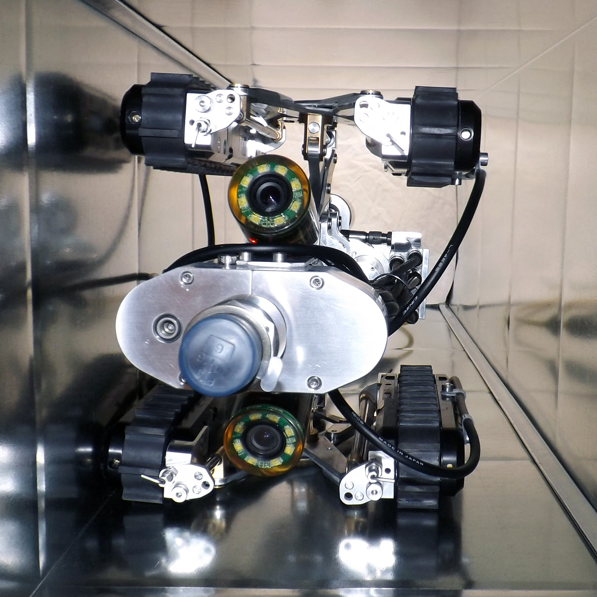 The use of industrial robotics continues to expand with the high priority for public safety, and the future of robotics will increasingly see remote sanitization activities. A robotic crawler that is built on a multi-mission modular approach offers the adaptability required to overcome access and maneuverability obstacles encountered with confined space entry and varying diameter ductwork featuring multiple bends and elbows typical of heating, ventilation, and air conditioning systems. The custom duct cleaning robotic system presented here leverages a robust crawler track setup enabling cleaning in rectangular and circular ducts from 200 to 350 millimeters (8 to 14 inches) in diameter, up to 30 meters (100 feet) long. The cleaning robot can fit through a 190-millimeter (7.5-inch) opening for positioning. The flexible crawler is controlled through proprietary software driven with familiar Xbox controller operations. Onboard inspection cameras enable smooth navigation and post-work validation of satisfactory cleanliness levels as required.