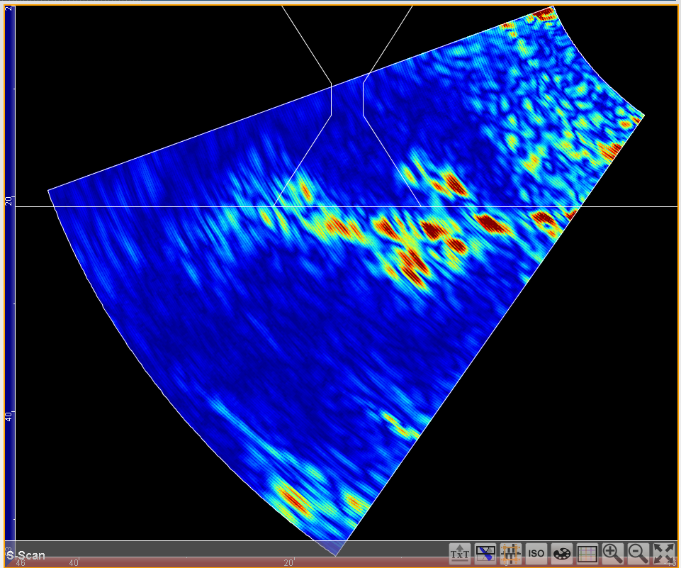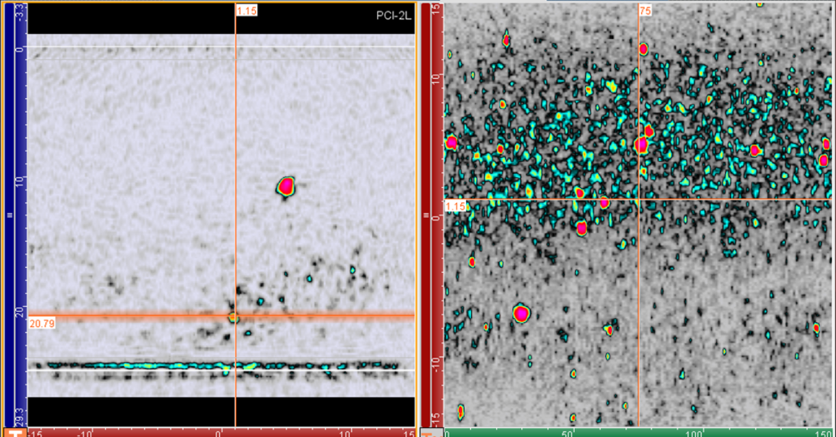 Figure 6: Time of flight diffraction ultra-low angle imaging of defect clusters