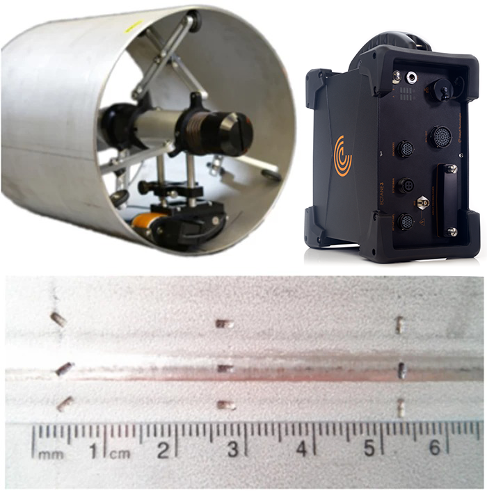 This application involved inspecting 14 km (8.7 mi) of lined pipe, broken down into 12 m (39.4 ft) sections, for a total of 1,167 pipes. The inner diameter (ID) of the pipes ranges between 203 mm and 305 mm (8–12 in). The welds to be inspected are approximately 3–8 mm (0.118–0.315 in) wide, 0.5–1 mm (0.020–0.039 in) high, and must be scanned in a single pass, including the Heat-Affected Zone (HAZ).