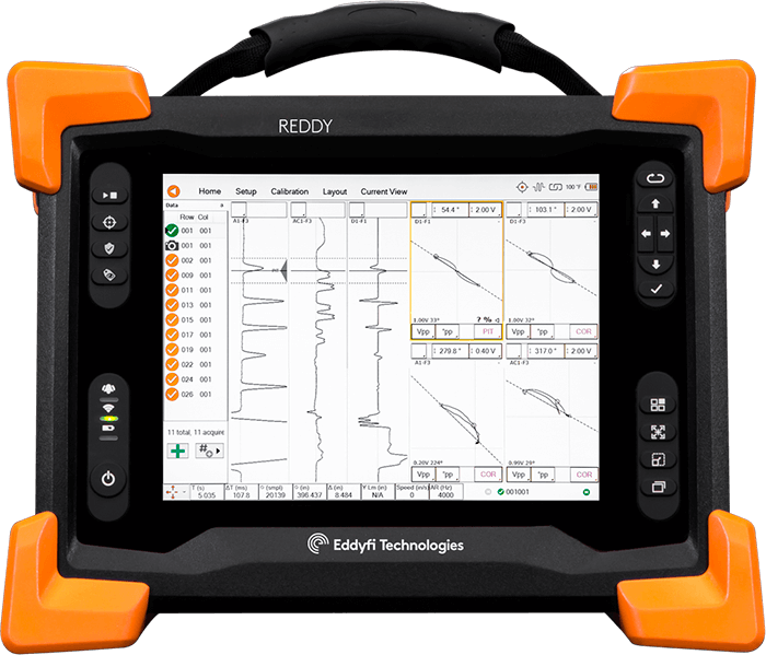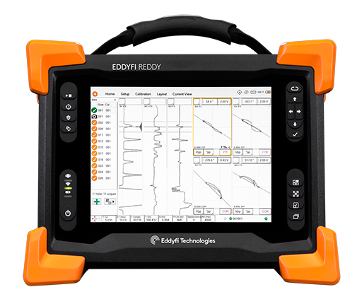Learn moreEddy current testing is the most reliable way to assess tubing defects in chillers. Unfortunately, the few systems used in the field are old technology which offer small, low-resolution display, very limited features especially for data analysis which is critical, poor control ergonomics, plus they require external power and are not waterproof. They also lack easy-to-use embedded software with efficient reporting. Thanks to a modern approach, the Eddyfi Technologies' solution offers a simple user interface and assistant analysis tools to make it easier than ever for anyone to inspect AC tubing while getting the best detection capabilities. The Reddy AC is lightweight, water resistant, battery operated and designed with a built-in touch screen so that it can easily be transported wherever the chiller is located, even in tight places. With its simplified and streamlined user interface, it is easy to assess a typical chiller. All data is recorded which makes it perfect for auditing and insurance purposes.