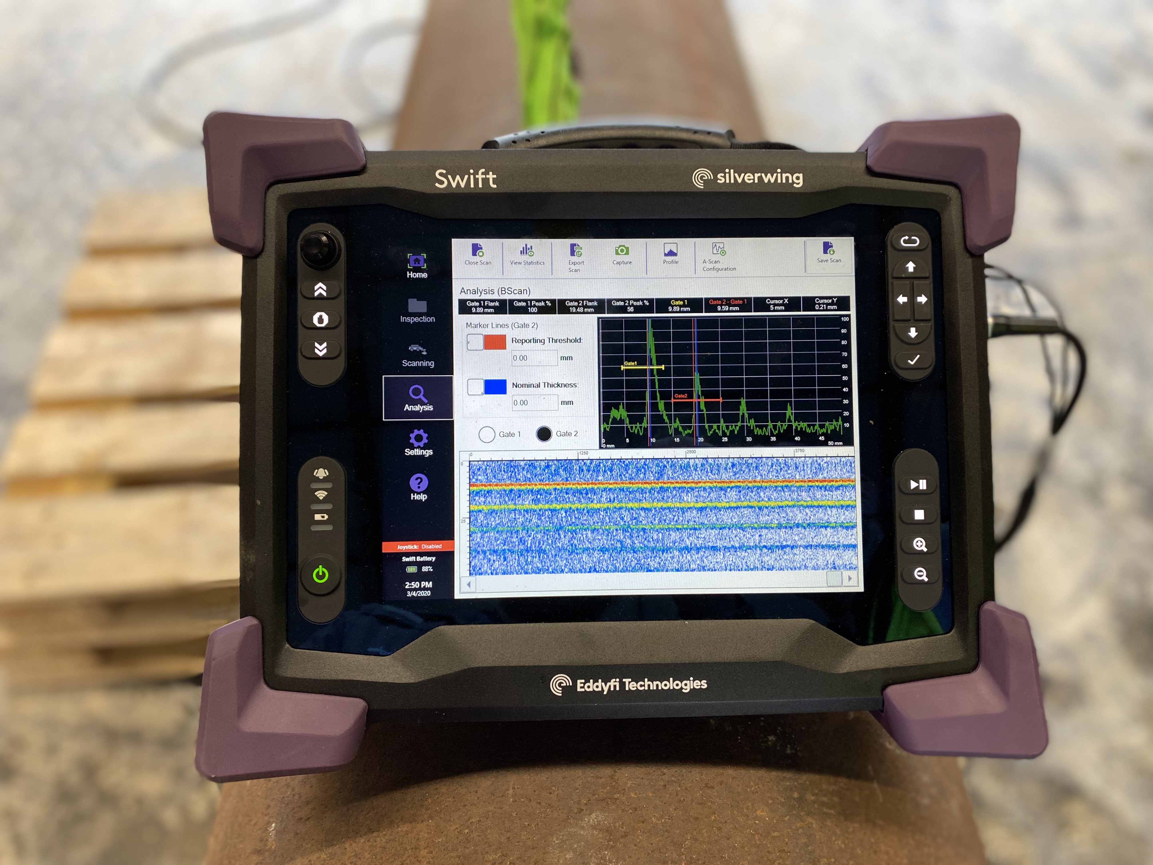 Swift was selected as the acquisition device which connected to the R-Scan dry wheel probe and a custom tether. Both robot controller and Swift use a Windows-based operating system and were therefore managed as applications from the rackmount interface used to control the crawler.