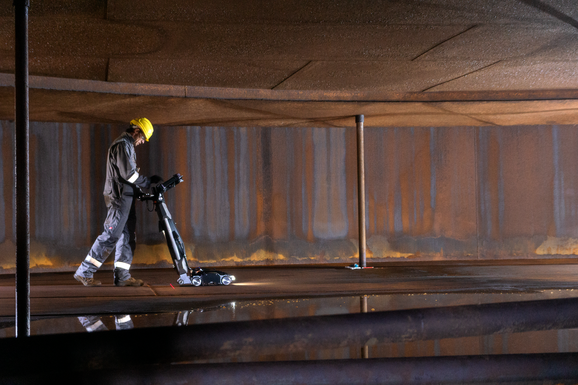 Storage tanks are common to the security and defense sector, typically containing aviation or ship fuel products but also standard vehicle fuel. These tanks may be above ground, buried, or semi-buried horizontal or vertical cylinders. The FloormapX and Handscan, Scorpion2™, R-Scan and RMS with R-Scan Array offer inspection of these aviation and shipyard tanks, employing both MFL and ultrasonic testing for corrosion mapping and thickness measurements of the tank shell and roof. With portable phased array UT (PAUT) instruments —like the Mantis™ and Gekko®— operators can perform corrosion mapping inspections with confidence, combining high Probability of Detection (PoD) of pitting and other corroded areas with high productivity. Often the underground tanks will have an external concrete lining so besides being underground without excavation the inspection would need to be carried out internally. Where the cylinder diameter allows, the RMS with R-Scan Array provides corrosion maps of the externals looking for exterior corrosion from inside. The MaggHD™ miniature magnetic crawler used for remote visual inspection (RVI) may also be considered for buried tanks, alleviating the associated risks with manned confined space entry.