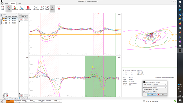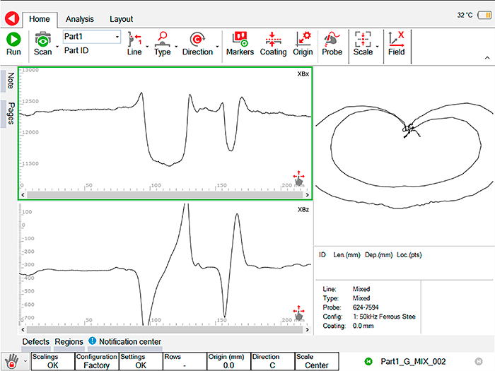 Experienced ACFM operators will feel immediately at home—with familiar Bx/Bz traces and butterfly taking center stage on the Amigo2 screen—while the multi-touch interface offers a highly intuitive access to all software functions in ribbon form.
