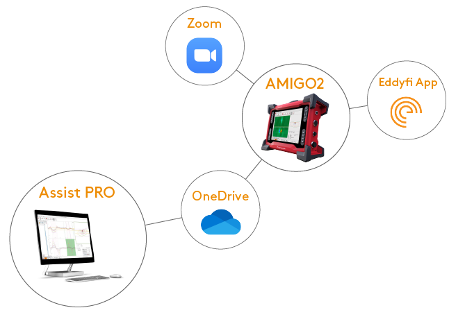 Providing new levels of efficiency and collaboration, Amigo2 can benefit from the connectivity tools. Transfer and share data with colleagues through OneDrive. Share your screen with remote analysts through Zoom. Add pictures and notes to indications and scans through the Eddyfi Mobile App.