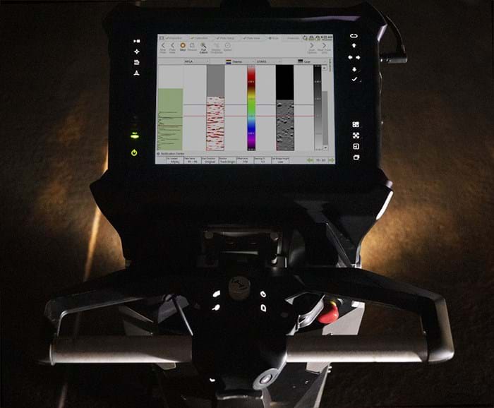 With a minimal software button click approach, operators spend more quality time scanning. An Ergonomic hardware thumb button allows operators to stop a scan, move to the next track, then start a scan without removing their hands from the drive handles or touching the tablet.