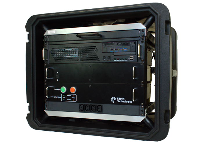 If you are looking for more power and to operate large class crawler systems, then the High-Power controller is for you. It comes in an 8U rackmount transportable case for practical on-site deployment. It has enough power to drive any large class system up to in 1 kilometer (0.6 miles) but is less portable than the IP100. The High-Power controller has been designed using rackmount components, and configurations are available that can be installed in a standard rack within a service van or fixed control center.