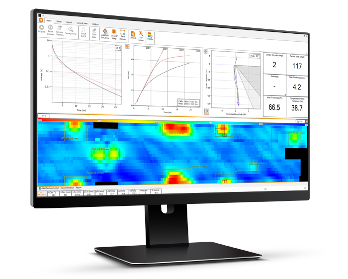 SmartPULSE also adjusts wall thickness (WT) measurements to ensure optimal performance and repeatability, while limiting the need for advanced knowledge of pulsed eddy current testing. The user-friendly multi-touch software also includes several innovative features, including real-time C-scan imaging (grid-mapping and dynamic modes), complete wall thickness measurements (ID and OD corrosion), as well as complete inspection management and reporting capabilities.
