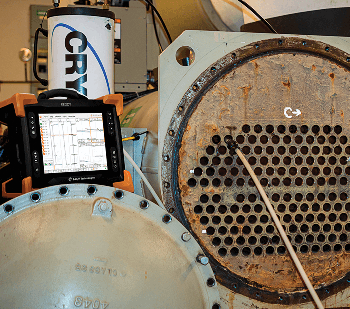 Since air conditioners are similar to small Heat Exchangers (HX) in terms of number of tubes, they benefit greatly from the portability and minimal setup time provided by Reddy. Larger HX-generating massive amounts of data and requiring other inspection techniques (such as ECA, RFT, NFT, NFA, MFL, and IRIS)—are still, however, better served by a larger, multi-technology tester such as Ectane® coupled to a laptop computer for optimal data visualization and file management.