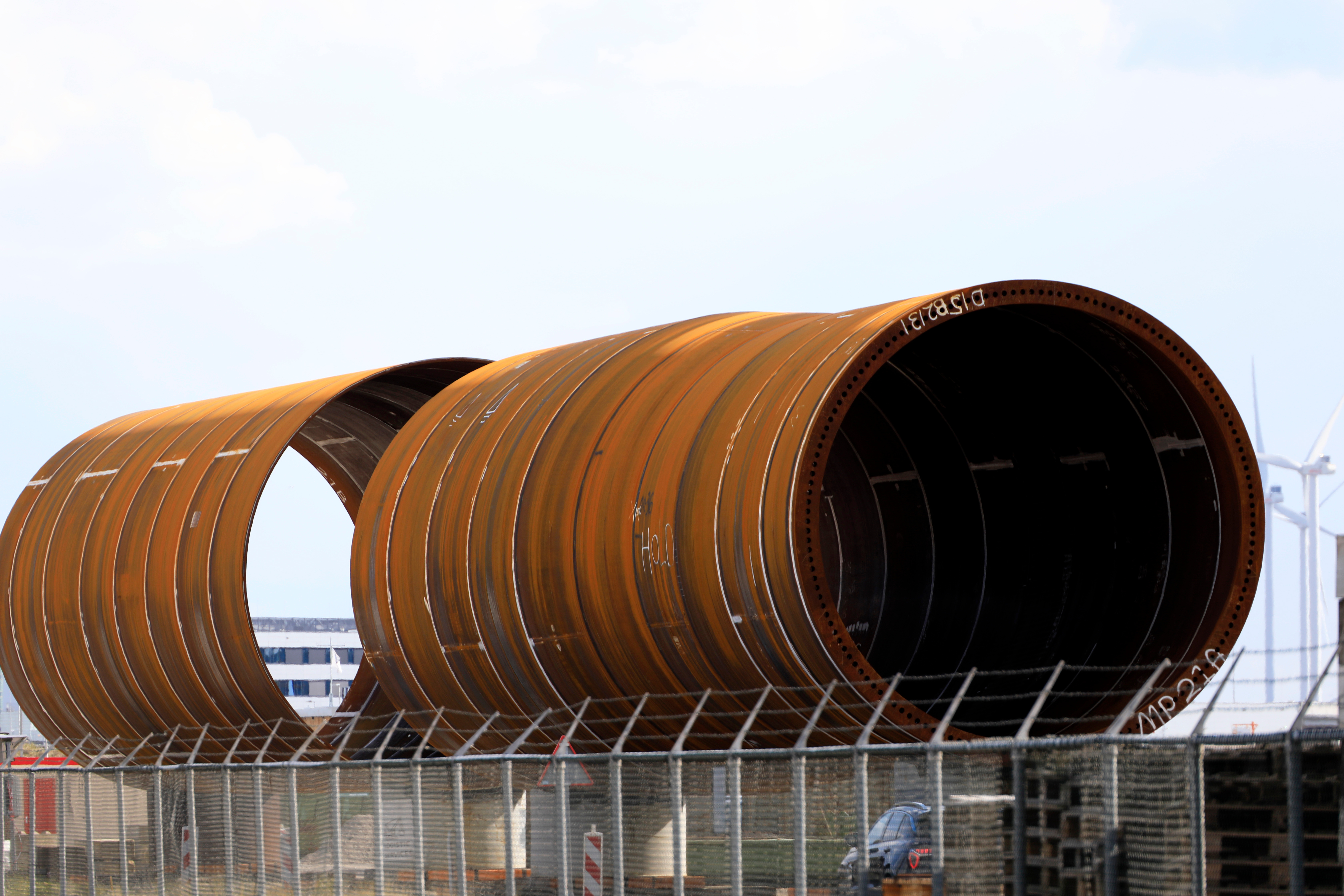 Grand monopieu, montrant les soudures circonférentielles et longitudinales