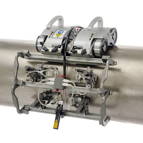 Le scanner motorisé NAV2 (voir figure 7) est un scanner robuste, alimenté par batterie, qui a fait ses preuves sur le terrain et qui a été déployé avec succès sur divers actifs tels que des réservoirs de stockage, des cuves sous pression, des pipelines et d'autres infrastructures critiques. Il peut être utilisé sur des tuyaux d'un diamètre de 4 pouces à plat. Il peut être configuré pour les soudures circonférentielles et longitudinales.