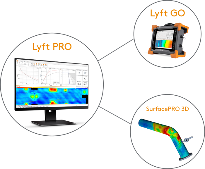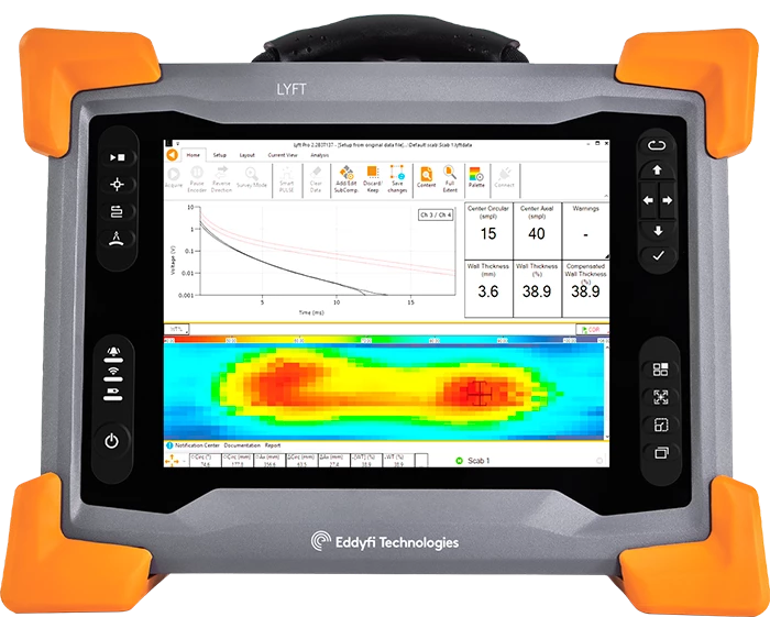 Lyft regorge d’automatismes et d’algorithmes avancés qui suppriment la dépendance propre à l’opérateur, grâce à la puissance de la technologie SmartPULSE™. Il optimise automatiquement les paramètres de l’émetteur et du récepteur (gain, durée, seuils temporels, filtres, etc.). SmartPULSE ajuste également les mesures d’épaisseur de paroi (WT) pour assurer des performances et une répétabilité optimales, tout en limitant la nécessité d’une connaissance avancée du courant de Foucault pulsé. Le logiciel multitouches convivial comprend également plusieurs fonctionnalités innovantes, notamment l’imagerie C-scan en temps réel (mode grille et modes dynamiques), la mesure complète de l’épaisseur de paroi (corrosion ID et OD), ainsi que la gestion et le compte rendu complets de l’inspection capacités.
